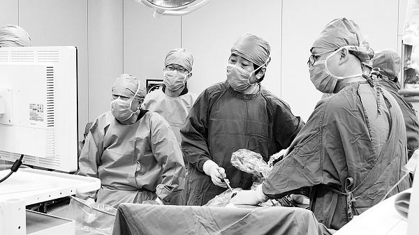 那彦群教授(左一)带领团队为患者手术。 (医院供图)