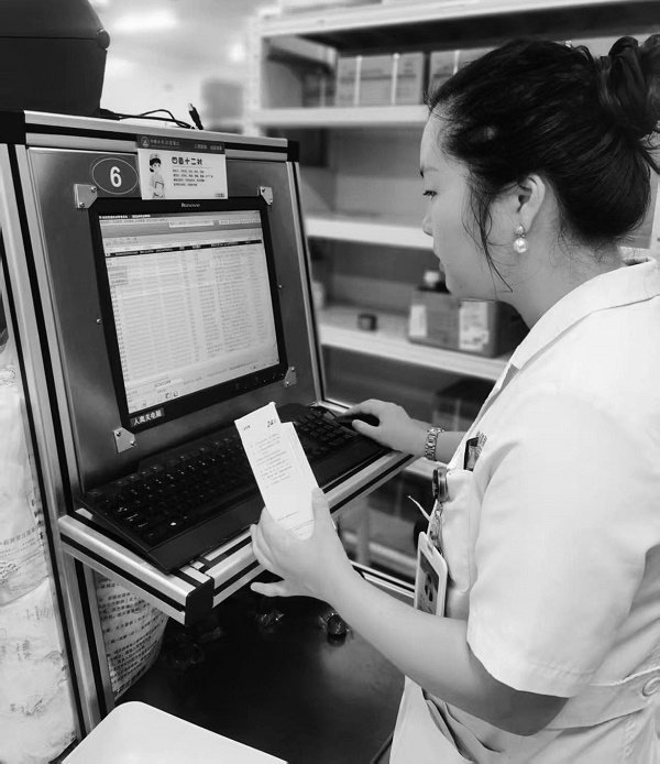 中南大学湘雅医院药学部药师戴婷婷在核对药品。本报记者 吴刚 摄