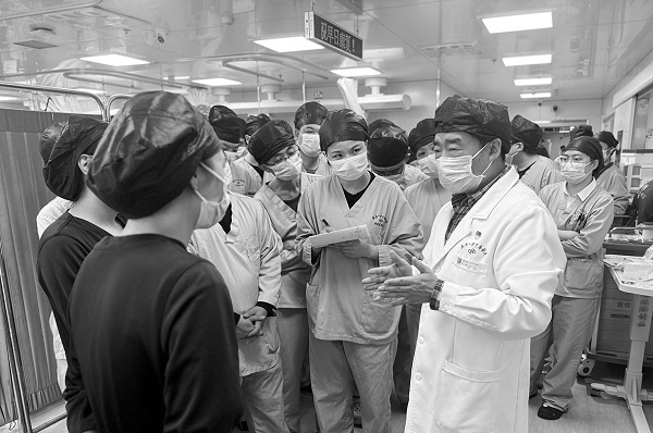 彭志勇教授(前排右一)带领团队进行教学查房。(医院 供图)