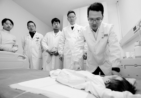 李云飞主任医师(右一)带教查房。 (医院供图)