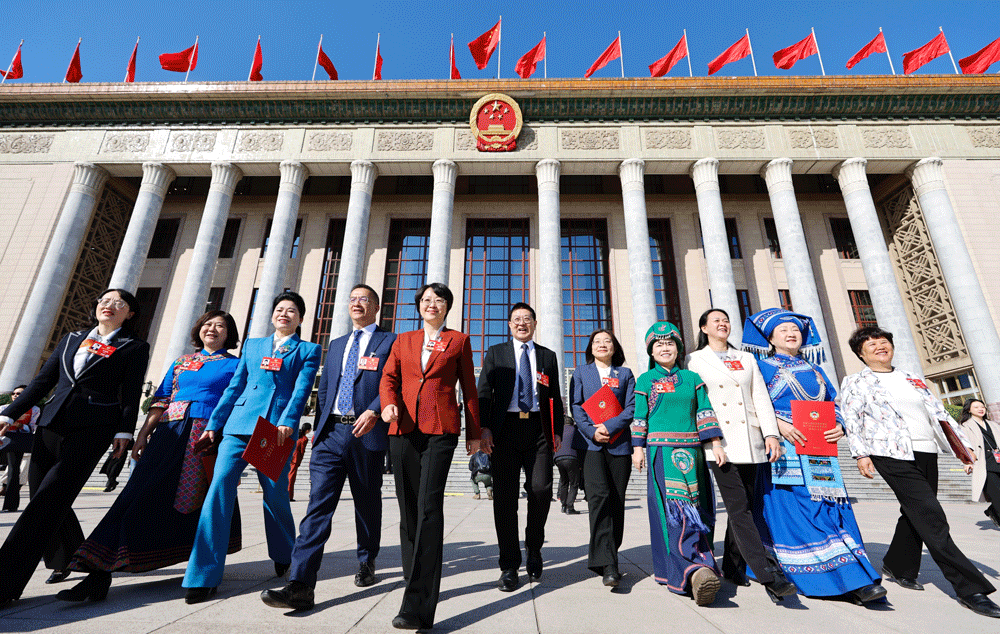 3月11日,全国政协十四届四次会议在人民大会堂举行闭幕会。图为全国政协委员走出会场。中新社供图