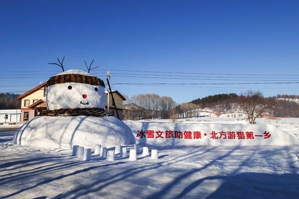 黑龙江省黑河市爱辉区新生鄂伦春族乡入口处,“冰雪文旅助健康·北方游猎第一乡”的标语迎接着远方的来客。