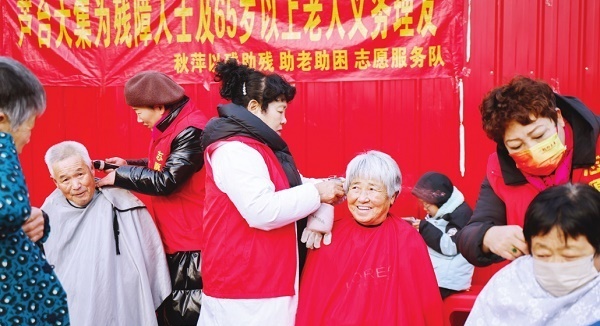 2月5日,天津市宁河区秋萍巾帼志愿服务队在芦台大集上开展助老助残志愿服务。
