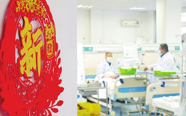 7时,天还没放亮,血液透析室内早已灯光明亮,护士长邓俊峰正带着护士们进行患者上机前的准备工作。此时,大厅已有不少患者陆陆续续前来等候治疗。“单次血液透析治疗耗时约4个小时。春节期间,为了让患者早点回家团圆,血液透析中心会提前至6时开门,每天有1名医生和3名护士轮流值守,确保血液透析服务不中断。”邓俊峰说。