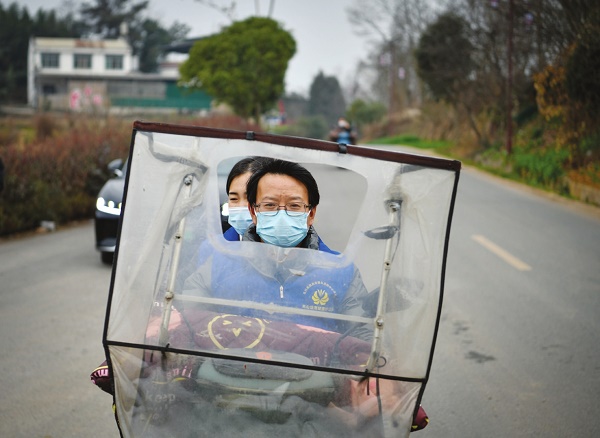 2月3日,北川羌山雄鹰健康护卫队两位队员结成搭档,骑电动车前往永昌镇裕清村,为村民送上春节健康提示。