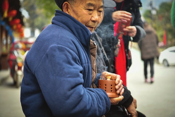 2月4日,北川羌山雄鹰健康护卫队到曲山镇石椅村开展义诊活动,现场一位老年人正在等待。