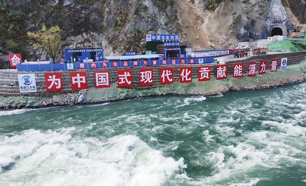 孟底沟水电站导流洞上游标施工现场。 资料图