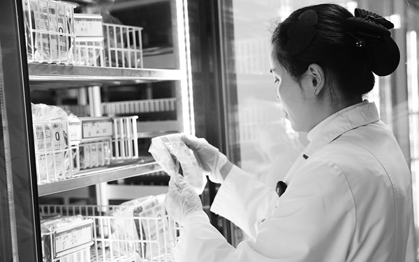 2月25日,重庆市血液中心供血科工作人员在检查当日待出库血液。
