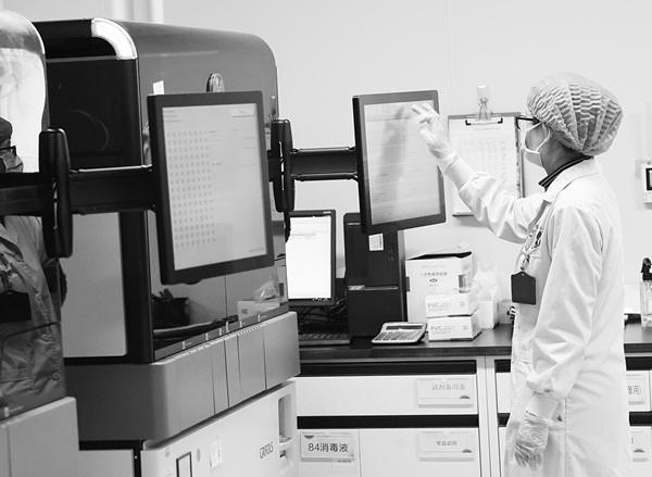 2月25日,重庆市血液中心检验科工作人员对采集回来的血液进行核酸检测筛查。