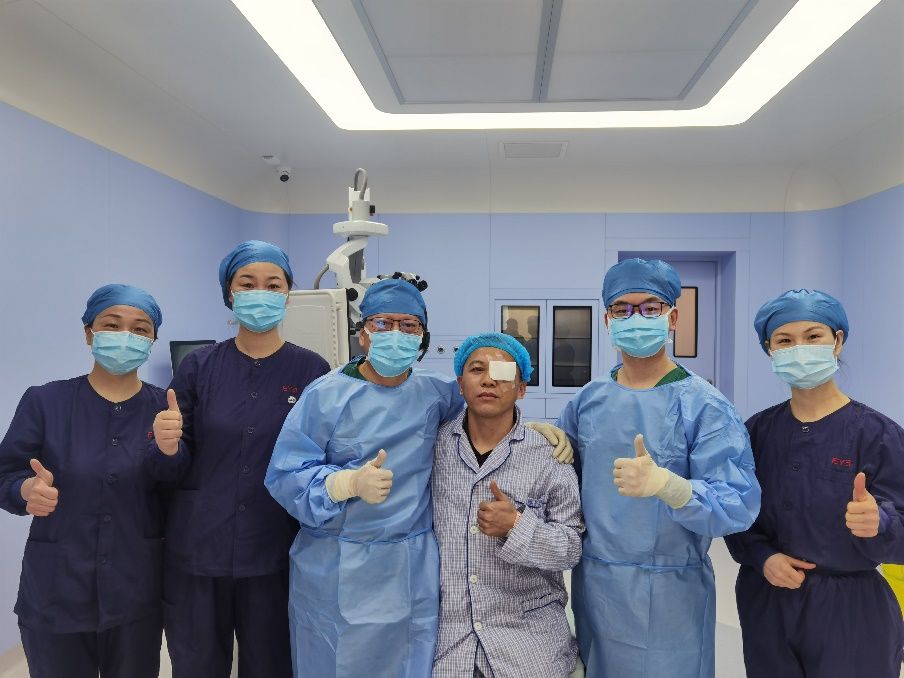 凭借精湛的技术和丰富的经验,李文生教授顺利完成了这台手术。术前,在戴镜情况下,赵先生连视力表的第1排都看不清楚。术后,他右眼能看到视力表的第9排,左眼能看到第7排。