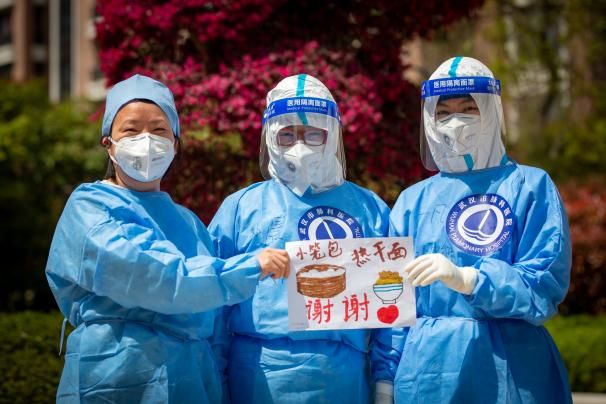 这25名医护人员中,有19名护士、5名医生和1名管理人员。4月3日抵沪后,他们便迅速投入上海市的全民核酸检测工作中。他们或乘三轮车顶着烈日,进村入户,流动采集核酸;或攀爬楼梯,登门服务老弱病残群体。他们挥汗如雨的身影,感动着上海市民。小朋友以小笼包、热干面为主题绘画,向他们致敬;热情的居民邀他们进门做客,送上饮料和丝巾,表达谢意。