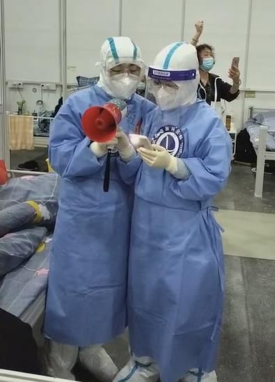 为了活跃气氛,医疗队员在方舱医院开“个人演唱会”