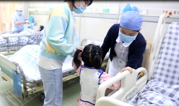 三分治疗,七分护理。对于骨结核患者而言,术后的早期康复和功能锻炼尤其重要。每天,骨科护士都会指导患儿和患儿妈妈进行功能锻炼,包括轴线翻身、直腿抬高运动、踝泵运动,防止并发症,督促患儿和家属按时服药,指导正确佩戴支具和给予营养支持等。