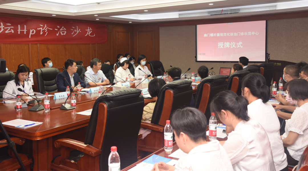 近日,由国家消化道临床医学研究中心等单位主办,西安医学院第一附属医院承办的2022陕西省幽门螺杆菌规范化诊治门诊授牌仪式暨学术会议在西安医学院第一附属医院召开。海军军医大学长海医院消化内科副主任杜奕奇、西安医学院第一附属医院院长闫红林、西安高新医院院长宋瑛、西安交通大学第二附属医院消化内科主任王进海、西安市第一医院医务科副主任孔祥云和西安医学院第一附属医院消化病院消化病区主任张明鑫等参会。