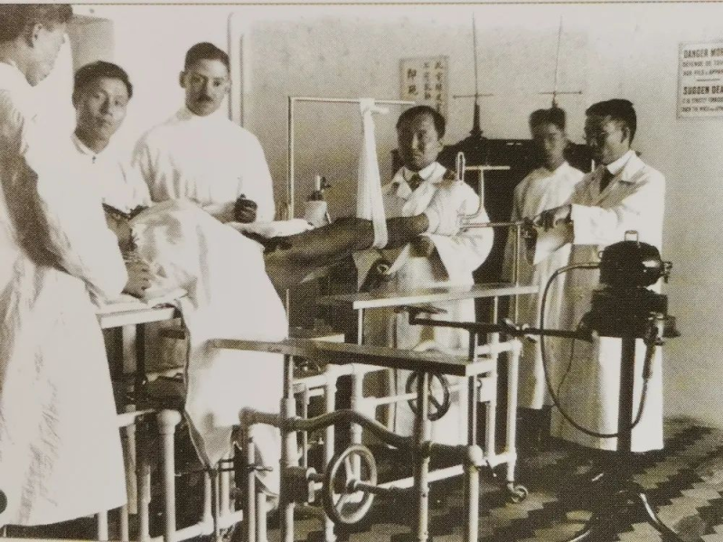 1900年,唐山矿井诊疗所扩建成一个小型职工医院。医院设立3间病房,由6名工作人员组成。1901年,该院更名为唐山中华医院,这是唐山市第一所西医医院,也是华北地区第一所矿山医院。1910年,医院开设手术室、消毒室和放射室,在放射室配备一台唐山市最早的小型X线机。从此,西医诊治范围和影响渐渐扩大。