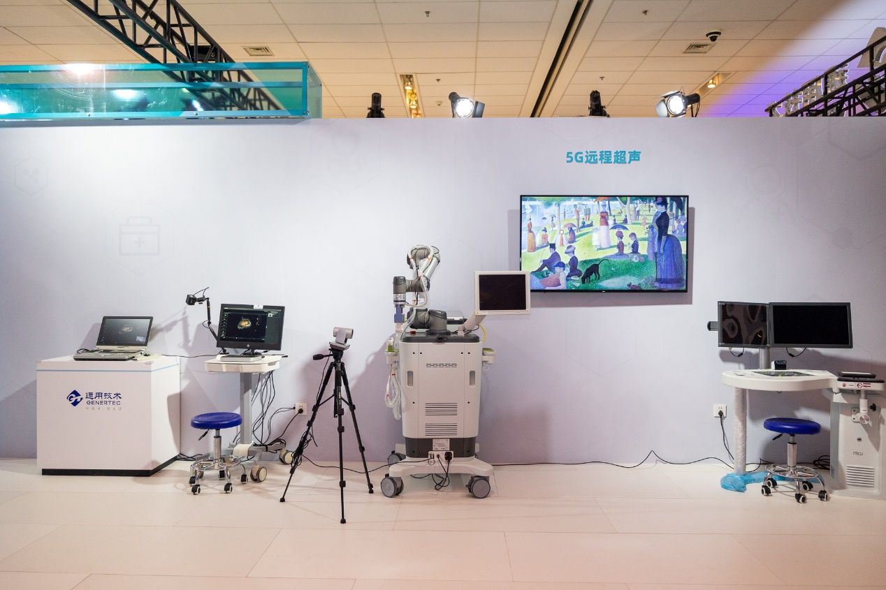 在展会现场,远程超声机器人吸引了众多目光,这是通用技术航天医科参展的“5G远程超声诊断系统平台”中的一部分。2021年8月,通用技术航天医科牵头申报的“5G远程超声诊断系统平台应用”项目成功入选国家“5G+医疗健康应用试点项目”。5G远程超声项目包含远程超声诊断系统、远程超声机器人、AI智能辅助检测等应用,满足远程超声会诊、远程教学培训、远程质控等需求。