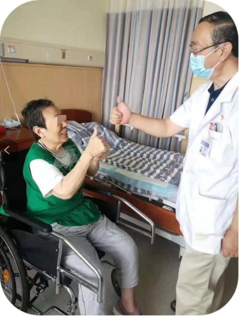 对桡骨骨折老人,医护人员让其进行抓物训练,做投篮动作,锻炼腕关节屈伸功能,进行“指尖芭蕾”训练,锻炼其手指功能;对踝部骨折老人,采取“踝部呼啦圈”训练,强化其踝关节周围肌肉力量,提升其关节活动度;同时,让老人跟随视频进行动作模仿,开展全身功能训练。如老人因过度疼痛,无法进行康复功能锻炼,则由老年科医生指导其用药。在康复过程中,让老人通过角色扮演增强康复训练的信心和热情。