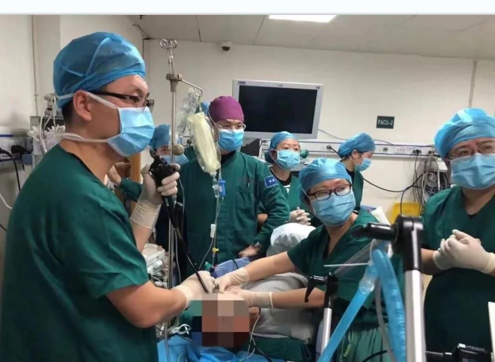 1年后,王叔又因咳嗽咳痰伴乏力、活动后气促再次来到成都三院。经气管镜检查后发现,他的右肺下叶基底段开口,新生物完全阻塞管腔,被诊断为重症肺癌,情况十分危急。在呼吸科肺癌与介入病区主任李国平的指导下,王叔接受多学科联合诊疗,接受硬性支气管镜下肺肿瘤消融治疗。随后,专家继续对其进行放化疗及免疫维持治疗。
