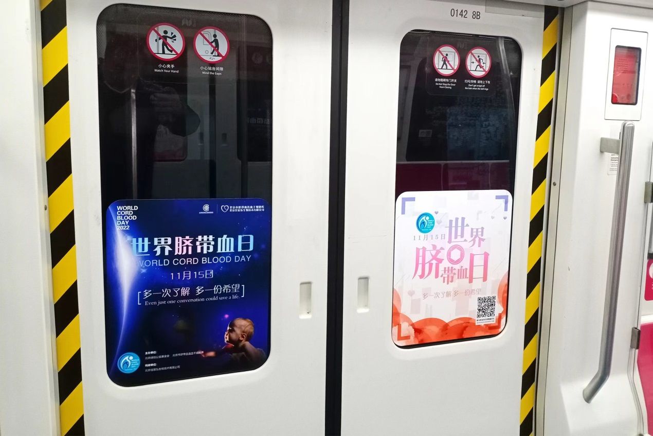 2022年11月15日是世界脐带血日。当天,北京市脐血库携手北京地铁、北京绿创公益基金会,发起“打卡亦庄线,脐带血知识科普”公益活动,旨在普及宣传脐带血的宝贵价值,提升社会认知,呼吁大众关注脐带血这份珍贵的生命资源。