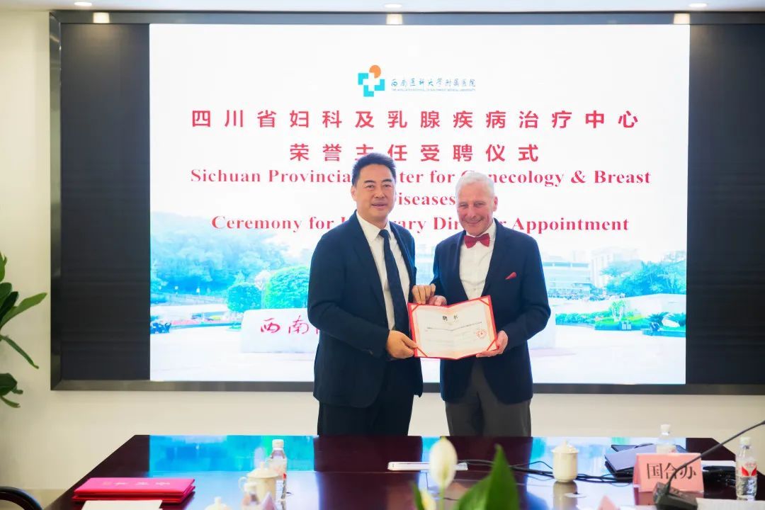 会上,西南医科大学附属医院与Schwenzer签署聘用意向协议书,并授予塔希曼教授四川省妇科及乳腺疾病治疗中心荣誉主任称号,感谢塔希曼教授6年来为推动西南医大附院发展作出的重要贡献。