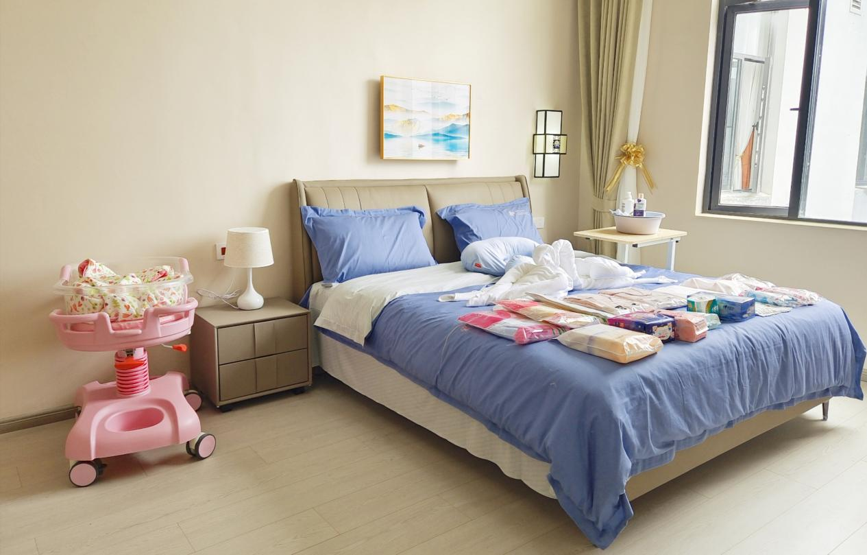 目前,母婴护理中心共有33间月子房,根据客户需求不同,设计了8种房型的月子房。配备高级婴儿床、冰箱、电视机、恒温暖奶器、消毒柜、婴儿洗浴台等,还设置智慧门禁系统,严格出入制度。