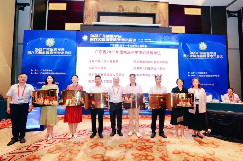在日前召开的广东省医学会第六次脑血管病学学术会议上,广东省卫生健康委脑防委为通过广东省2023年度防治卒中中心评审的单位授牌。坪山区医疗健康集团总院长、区人民医院执行院长冯天元(右四)代表医院接受授牌。