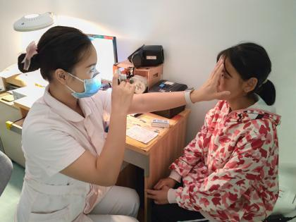 为了尽早让德吉得到治疗,减轻斜视造成的危害,在深圳市儿童医院护士长何莉的全程陪同下,该院眼科医护人员为德吉完善了专科检查。最终,德吉被确诊患有内斜视V征、垂直分离性斜视和屈光不正。
