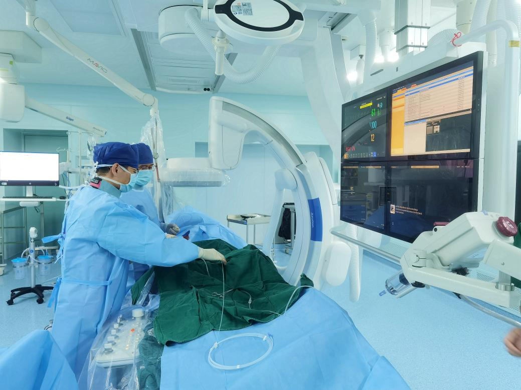 如果按照原来的常规做法,方大爷需要在DSA(数字减影血管造影)导管室处理左下肢动脉闭塞,后期再转手术室处理右下肢静脉曲张,程序繁琐,也多吃“苦头”。但浙江省人民医院越城院区建设了绍兴地区第一个复合手术室(Hybrid Operating Room,又称“杂交手术室”),在复合手术室的“加持”下,多种问题可以一次全部处理。
