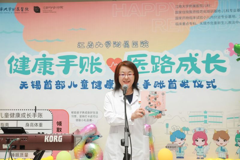 为向小朋友和家长们宣传健康成长科普知识,江南大学附属医院与江南大学设计学院黄秋儒教授团队联合设计了一本趣味满满的儿童成长健康手账。手账中包含了由儿科不同领域专家与设计团队共同打造的童趣科普插画,包括新生儿黄疸、儿童注意缺陷多动障碍、支气管哮喘、儿童性早熟等疾病的防治知识等,还使用医院卡通IP形象“鼋小江” “鼋小南”,引导小朋友每日进行健康打卡,帮助小朋友们养成健康生活习惯。首发仪式后,该院医护人员向患儿及家长代表赠送了儿童成长健康手账。