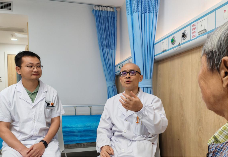 5月28日,正准备出院的79岁李奶奶拉着管床盛医生的手,不断感谢武汉市第六医院肿瘤科曾辉主任和他的团队。