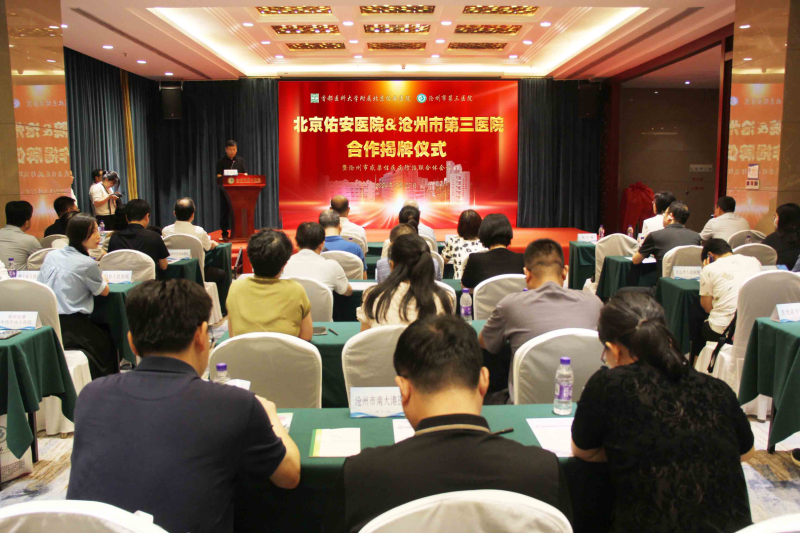 近日,首都医科大学附属北京佑安医院与沧州市第三医院(简称市三院)合作医院揭牌仪式暨沧州市感染性疾病防治联合体会议举办。首都医科大学附属北京佑安医院党委副书记、院长马迎民,重症肝病专家董金玲教授,办公室副主任闻卓,沧州市卫生健康委党组书记、主任张智勇,党组成员、副主任胡尚友,沧州市第三医院党委书记李云龙,党委副书记、院长高永海,沧州市感染性疾病防治联合体成员单位有关人员出席会议。