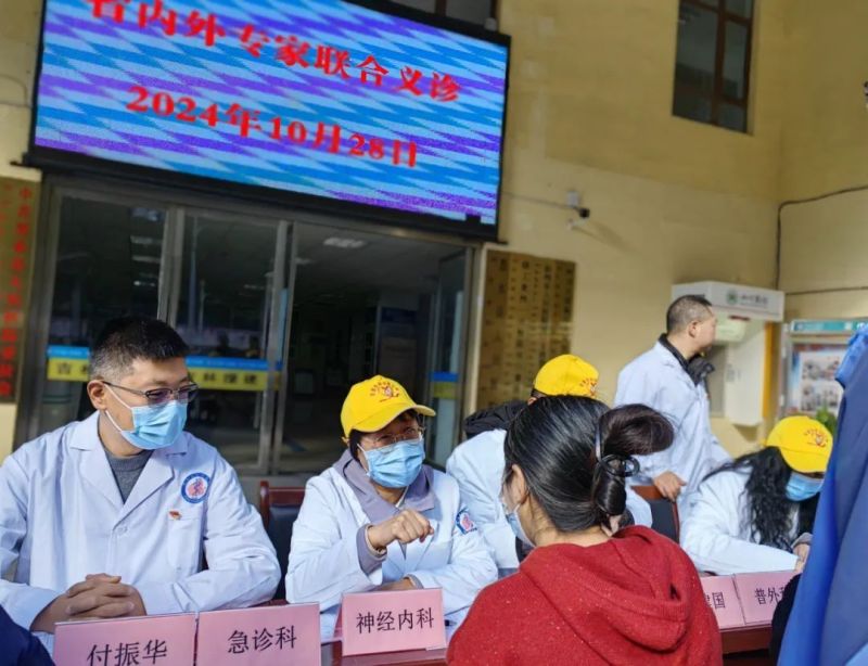 活动现场,专家们不仅为前来咨询的群众提供了专业的医疗建议,还以通俗易懂的方式普及了医疗保健知识、传染病防控措施等,并开展送药和就医指导服务,让群众感受到细致入微的关怀。一位年长的村民激动地表达了他的感激之情:“以前我们生病了要跑很远才能找到医生,现在专家们亲自上门给我们看病,真是太好了,感谢这些好医生。”当地群众对此次义诊活动给予高度评价。卡龙镇一位胆囊结石患者感慨道:“我一直被胆囊结石困扰,这次有肝胆外科和内科的顶尖专家来给我诊治,心里踏实多了。还有专家细心地教我如何预防和管理消化系统的疾病,真的学到了很多有用的知识。”