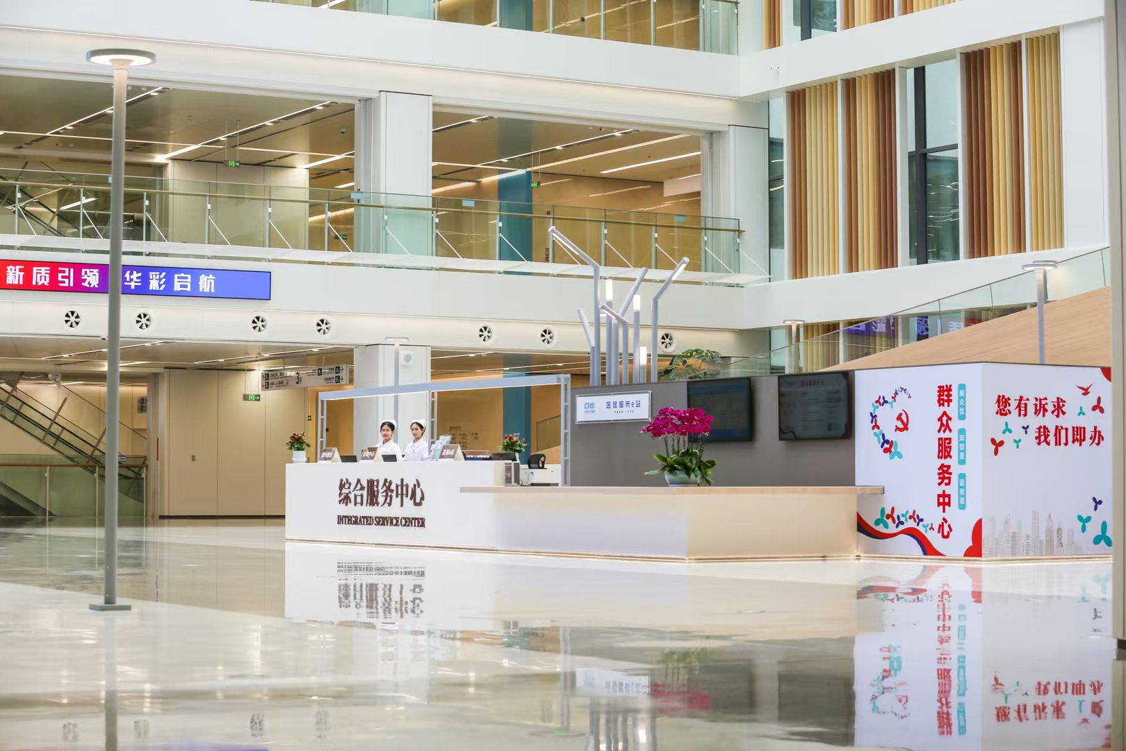 深圳市新华医院坚持“以患者为中心”。在功能布局上,设计了医疗中枢办理大厅,打造“医院中的城市”,让患者在一个区域内“一站式”享受各项服务。比如在空间设计上,为缩短急诊病人的抢救时间,急诊中心设置了“小综合”区域,配备较齐全的诊疗及独立检查设施,让病人和医护人员都能少跑腿。医院延续北大深圳医院的模式,打造“一个服务大厅、一个窗口业务通办、全院业务一条龙办理”的全流程服务模式,打造“一站式”综合服务中心,为患者提供预约、咨询、医保e站、便民、住院、诉求、总机和志愿者等“八位一体”服务,做到让患者少跑腿、少排队。