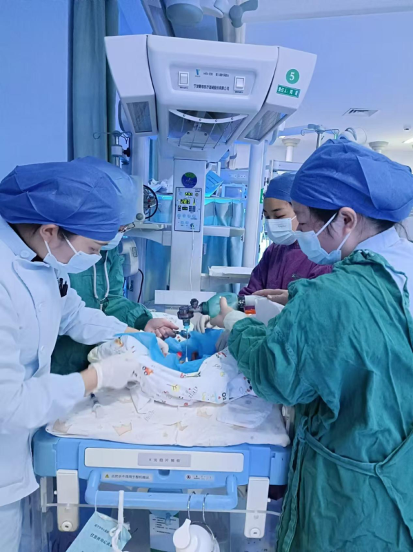 2024年11月20日21:30,该院新生儿科团队接到电话通知,立即前往手术室抢救一名胎龄27周的早产儿。医护团队迅速准备复苏设备、温箱和呼吸机,火速赶往手术室展开抢救,并将患儿安全转运至新生儿重症监护病房。患儿出生时体重仅800克,属于超早产儿,身体各器官结构和功能极度不成熟,面临着体温关、呼吸关、营养关、感染关等多道生死关卡。该院医护团队精心为患儿制订了个性化的救治方案,并通过特制的O型鸟巢护围、呼吸机辅助通气等,帮助患儿成功闯关。为了促进患儿的健康发育,出院前一周,护理团队还对患儿开启了“袋鼠式”护理。经过60多天的精心治疗与护理,患儿的体重增加到了2000克,身体状况达到了出院标准,顺利出院与家人团圆。