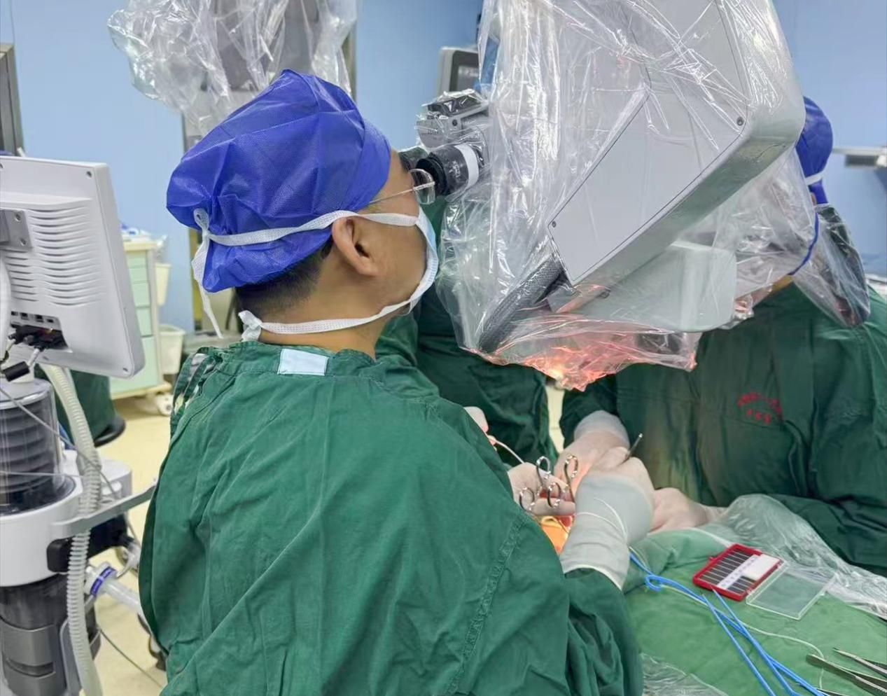 72岁的张女士(化姓)和73岁的王先生(化姓)均患阿尔茨海默病多年,记忆力明显受损、反应迟钝,日常生活需要依赖他人照料。二人家属在得知淮安市第二人民医院通过DCLVA技术可以治疗阿尔茨海默病后,希望进行尝试。该院神经外科、神经内科团队经过严格的术前评估,完善正电子发射计算机断层显像(PET-CT)、脑脊液标志蛋白测定、海马磁共振成像(MRI)等检查后,确认两名患者均符合手术条件。3月9日,两名患者的手术成功实施。刘文广团队通过颈部微小切口精准定位颈深淋巴管与颈内静脉分支,术中采用吲哚菁绿荧光显影技术实时监测淋巴管、淋巴结,在显微镜下,团队医生完成了数十个直径不足0.3毫米的淋巴管与静脉血管的吻合。刘文广指出,此手术的核心在于重建淋巴与静脉循环的第二通道,这既需要施术者对颈部解剖结构有毫米级的把控,也需要多学科的共同协作。