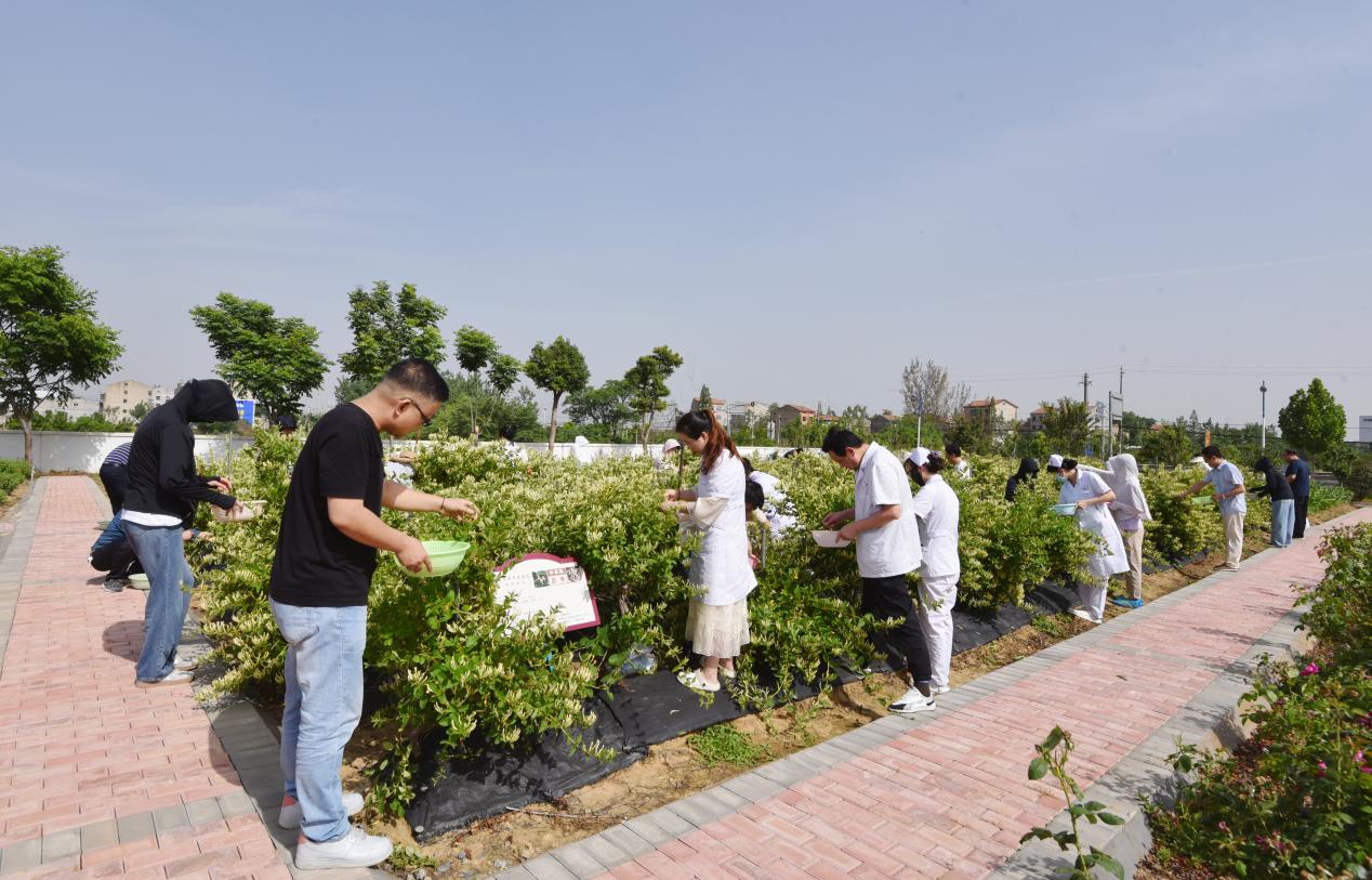 五月芳菲,湖北省云梦县中医医院中草药种植基地的苗圃内夏意涌动,玫瑰花、金银花、栀子花竞相开放,满苑飘香。为弘扬中医药文化、厚植医务人员的中医药情怀,医院近期多次组织医务人员开展中药材采摘、科普、加工制作等活动。