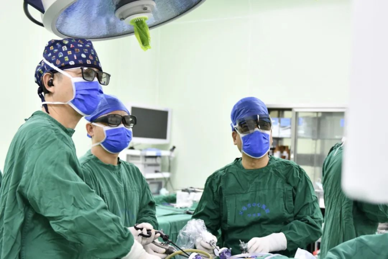 接诊陈大爷后,义乌市中心医院胃肠外科专家于吉人教授为其完善了相关检查,结果显示,患者小肠梗阻,回盲部狭窄,回肠末端肠壁明显增厚。于吉人详细询问了陈大爷的病史,并查看其各项检查报告。凭借多年的临床经验,于吉人敏锐地意识到,反复肠梗阻一定有问题,在老年人身上,这种肠壁局限性增厚,90%以上是病理性改变导致,很可能为肿瘤占位,必须手术探查。由于陈大爷年事已高,又曾做过开腹手术,腹腔内可能存在粘连,二次手术风险较大,因此,胃肠外科团队组织麻醉科、放射科、消化内科、病理科等多学科专家为其会诊,制定了详细的治疗方案。