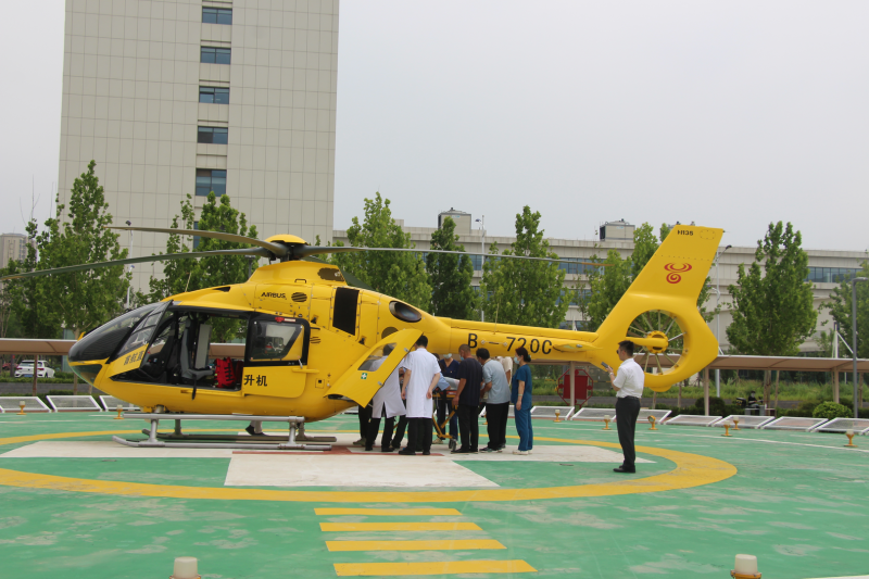 6月20日11时20分,伴随着螺旋桨的呼啸声,一架医疗救援直升机在山东省滨州市人民医院西院区急救停机坪缓缓降落。在滨州市人民医院医护人员与山东大学齐鲁医院急诊科医护人员的紧密配合下,一场空地联动的“生命接力”正争分夺秒地展开。