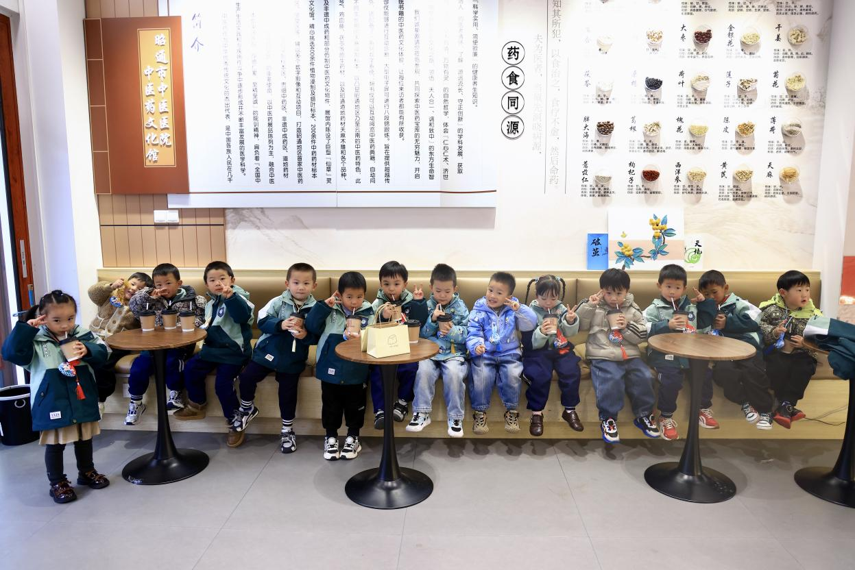 孩子们在“乌蒙养生局”茶饮店内喝儿童养生特饮