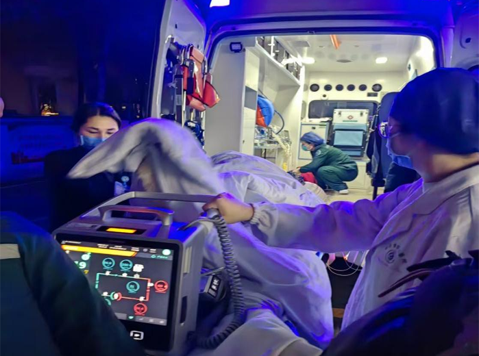 然而,夏先生的心肌损伤严重,心脏收缩功能近乎停滞,始终无法恢复自主心律,抢救一度陷入僵局。关键时刻,经医院心血管内科专家紧急联合会诊评估,罗慧果断决策,立即启动体外膜肺氧合(ECMO)救治。为全力保障抢救工作高效推进,罗慧在超声引导下为夏先生精准完成右侧股静脉、右侧颈内静脉双通路置管,建立了稳固的中心静脉通道,为后续生命支持治疗奠定了基础。14时20分,患者入院的第41分钟,ECMO团队副主任医师李臻、万琴姬联手为患者实施“静脉—动脉体外膜肺氧合(V—A ECMO)+体外心肺复苏(ECPR)术”。团队配合默契、操作精准,顺利完成管路穿刺与置入。15时25分,ECMO设备成功转机运转。伴随着体外循环的平稳运转,夏先生的心率逐步稳定至55次/分,血压回升至80/55毫米汞柱。在ECMO持续生命支持期间,夏先生突发出血症状。医护团队立即启动止血预案,一边精准控制出血,一边快速扩容纠酸。同时,针对突发意识丧失时造成的舌咬伤,邀请口腔科专家完成舌咬伤缝合术。