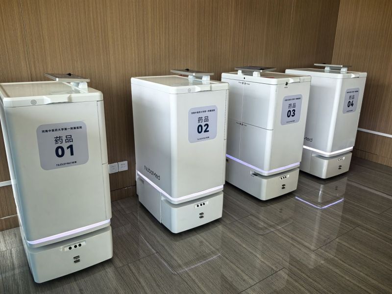 在河南中医药大学第一附属医院东院区,通体洁白、带着蓝色指引灯的智能物流机器人在各楼层间灵活穿梭,有的载着密封药品箱,有的托着标本转运盒,不需要人工引导,便能精准避开行人与障碍物,完成医疗物资配送“最后一公里”。从人工跑腿到机器人配送,该院运用信息技术打造了智慧医疗的生动实践。