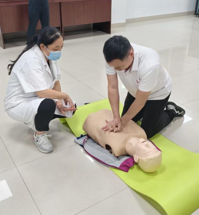 “基层干部是突发事件中的‘第一响应人’”,掌握急救技能可为生命争取关键时间。授课中,叶松福主任医师结合临床案例,系统讲解心肺复苏操作标准(按压深度、频率、呼吸配合)及AED设备使用流程等,还通过人体模型演示易错要点,学员分组实操时逐一纠错指导。参训干部表示,此类培训实用性强,既能保护自身与家人,又能在社区应急、基层服务中发挥作用。