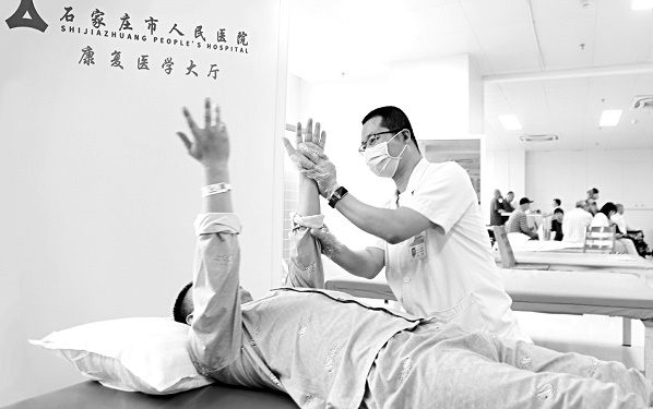 石家庄市人民医院的康复师正在帮助患者进行康复训练。石家庄市卫生健康委供图