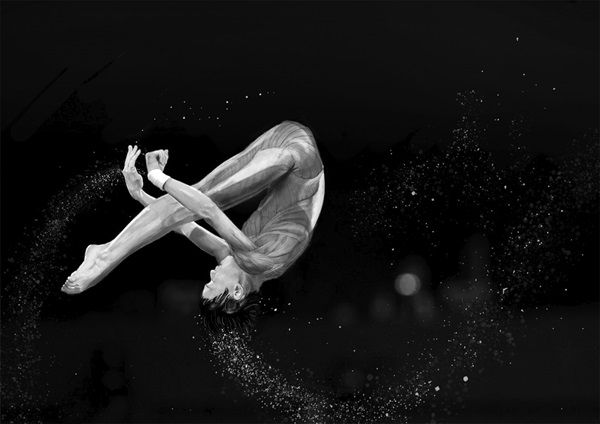 除了解剖结构外,作品还刻画了运动员的头面部、身体的皮肤,手部的线条,翻腾时卷起的美妙水花及赛场的灯光等,希望将人体解剖结构与优美而有力量的运动员动作结合起来,表现跳水运动的力量美、结构美与艺术美,并以此表达对我国运动员追求卓越精神的钦佩。