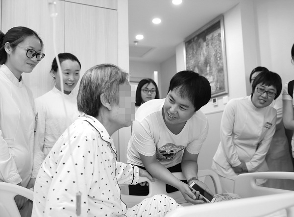 一位胰腺癌患者因常年疏于与儿子沟通,父子关系紧张。团队发现后,常常与老人聊天,并在老人生日当天策划了一场小型派对,引导他道谢、道爱。在温馨的氛围中,老人终于对儿子说:“爸爸对不起你,你小的时候爸爸不该打你。那次你跟我说,等我老了不养我,我一直记得。”儿子赶紧说:“还有这么回事?我早就不记得了。”儿子的一句话让老人卸下了压在心头多年的石块。