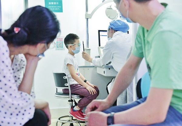 医生为儿童检查视力