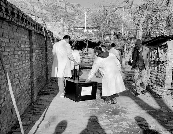 检查结束后,子洲县马蹄沟镇卫生院医务人员带着数字化便携式助诊设备离去。