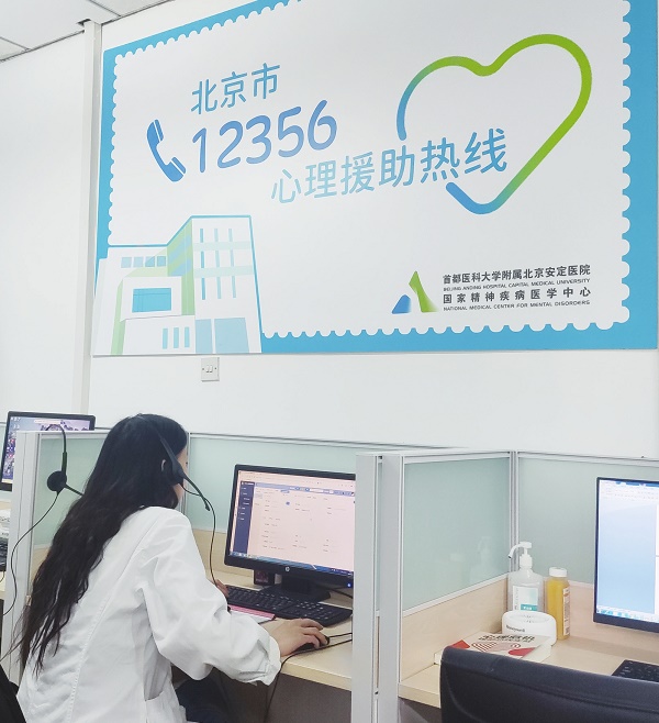 近日,首都医科大学附属北京安定医院接线员正在北京市“12356”心理援助热线办公室接听来电。