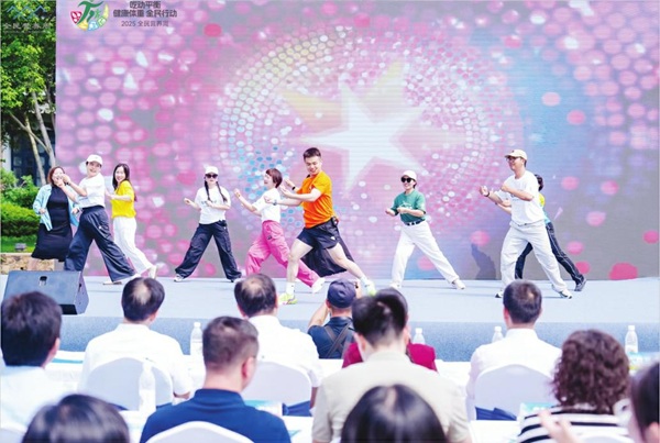 今年湖北省卫生健康委、武汉市卫生健康委主办的武汉市全民营养周,以“吃动平衡 健康体重 全民行动”为主题,通过举行健步走、“医学营养减重”等活动,推动市民关注营养健康,共建共享健康生活。图为营养周启动仪式上的健身操展演。罗磊 摄