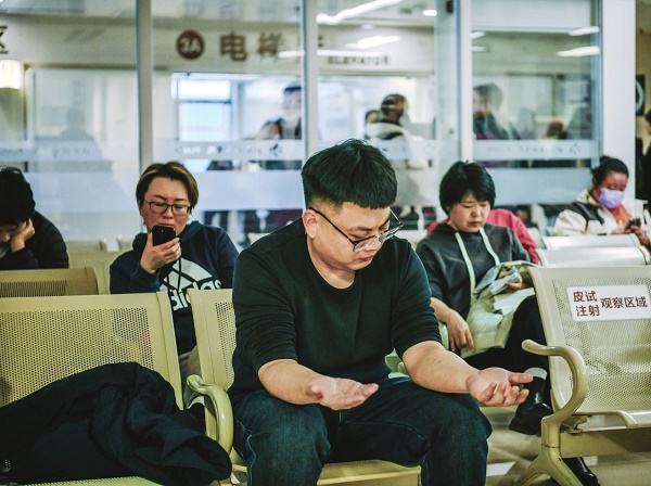 3月25日,首都医科大学附属北京世纪坛医院变态反应中心,不少市民因花粉过敏前来就医。